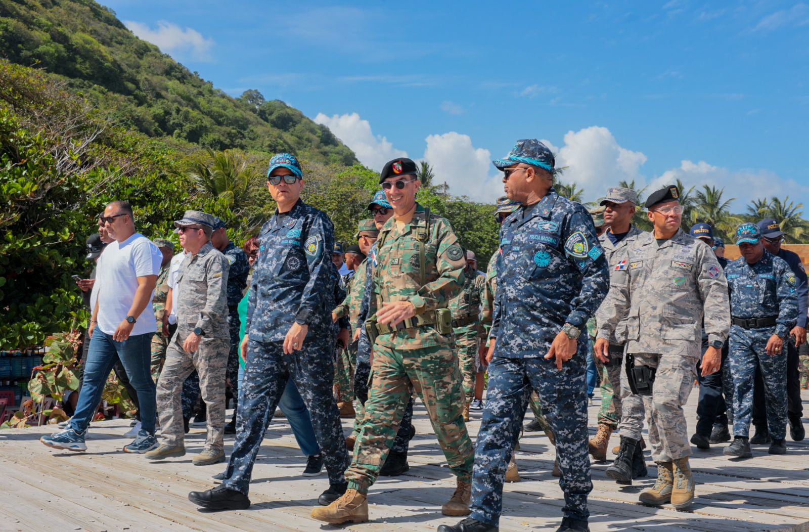 Posteriormente, la comitiva se trasladó a la provincia Barahona, donde realizaron una inspección del dispositivo de seguridad desplegado en la zona. Allí estuvieron acompañados por el director regional Sur de la Policía Nacional, general Juan Pablo Ferreira Veras, y la gobernadora provincial, Oneida Catalina Féliz, con quienes evaluaron las acciones preventivas implementadas para garantizar la tranquilidad de residentes y visitantes.